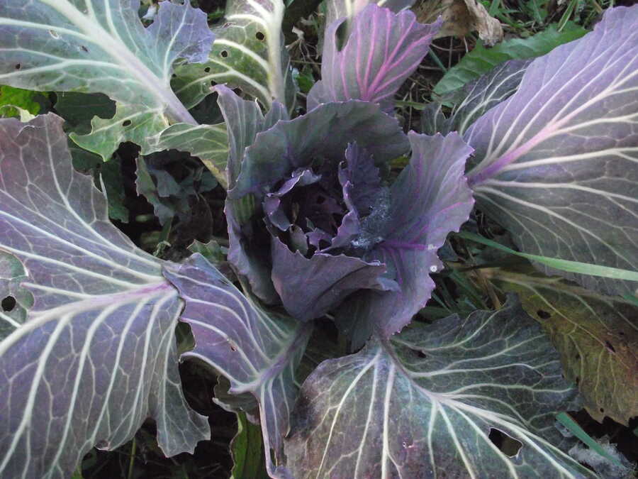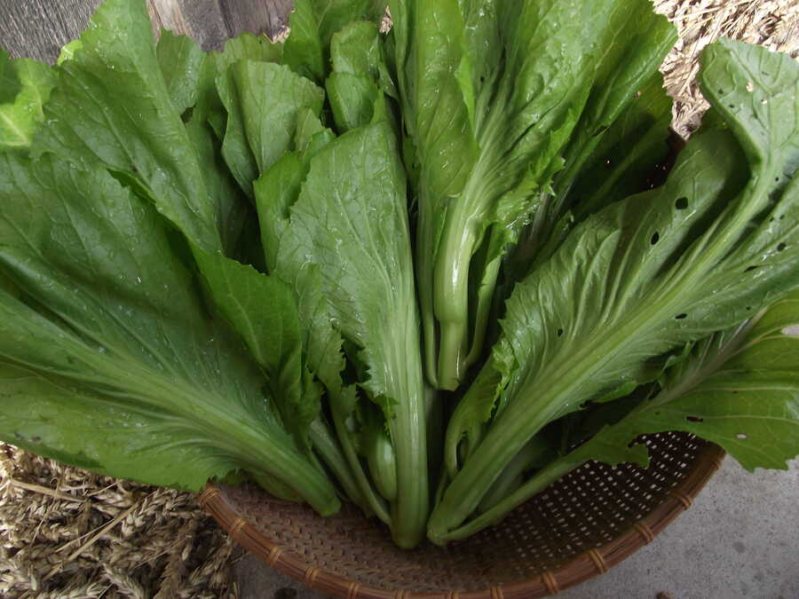One of those plants so beautiful that harvesting efficiently is only possible if you don’t look too closely. I actually pulled one up and put it in a vase as a bouquet for our table in mid-November! If you do look closely, you’ll find yourself mesmerized by the delicate tracery of purple lines spreading across the green leaves with their brilliant white veins. It looks like a map of a beautiful unknown place. The taste lives up to the appearance – sweet and spicy, but not overpowering. The leaves are a little thicker than average and slightly savoyed, giving this mustard a pleasant bulk. For those used to thin, insipid salad greens, this is a much more substantive and glorious green, raw or stir-fried. Slow-bolting but cold-hardy; good for either spring or fall plantings. Bred by Frank Morton of Wild Garden Seeds from a cross between Horned and Miike mustards, combining the wisdom and taste of Chinese and Japanese gardeners down through the centuries into a brilliant new variety. OSSI pledged.